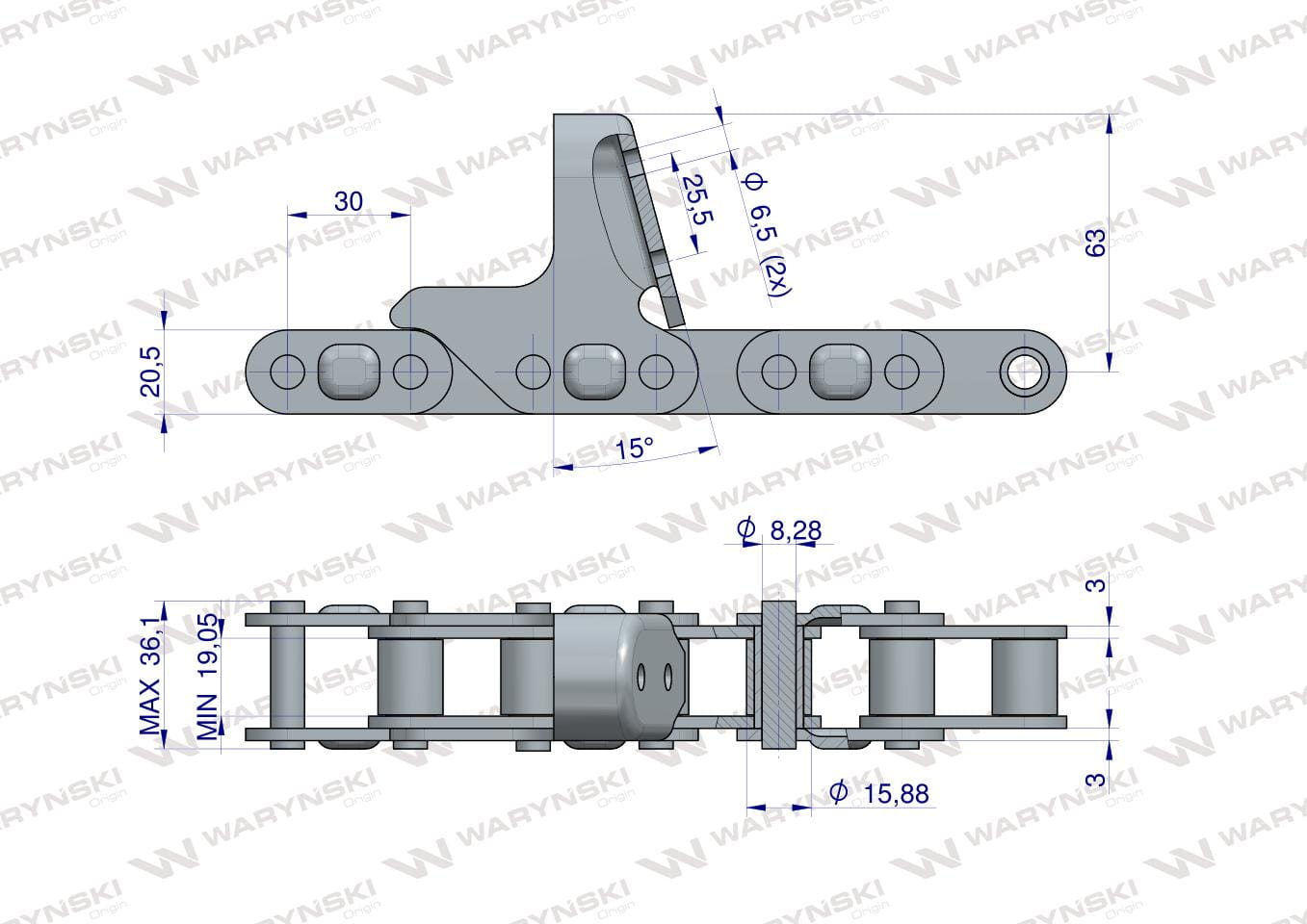Łańcuch obrywacza kolb przystawki do kukurydzy zamknięty 72 ogniwa CA627 x 72A CPEF14 9 płytek zastosowanie Capello WARYŃSKI