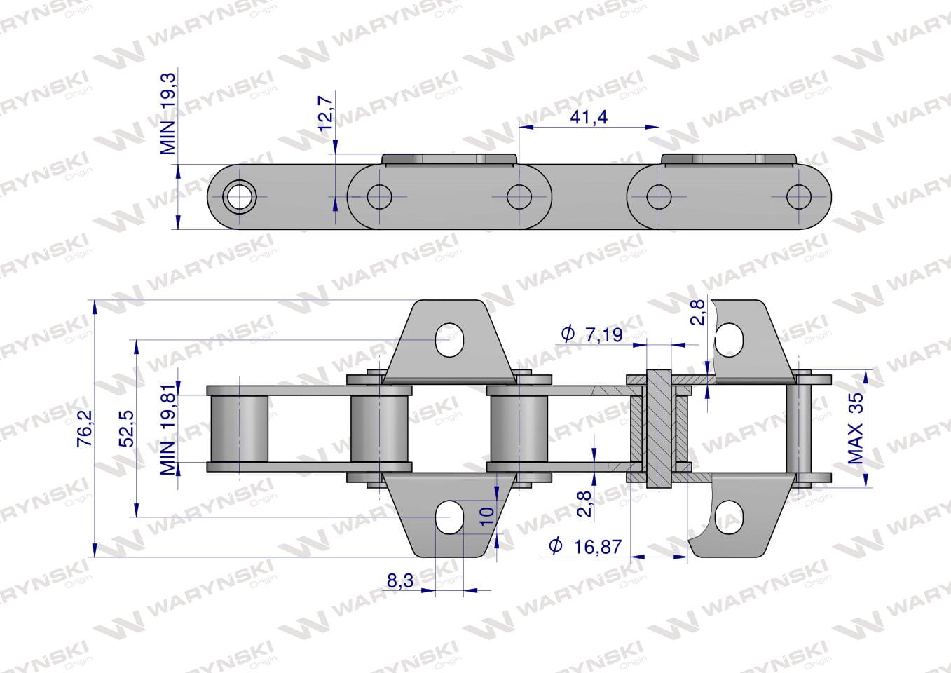 Łańcuch podajnika CA550 łapka K1 co 2 ogniwa 5m Waryński