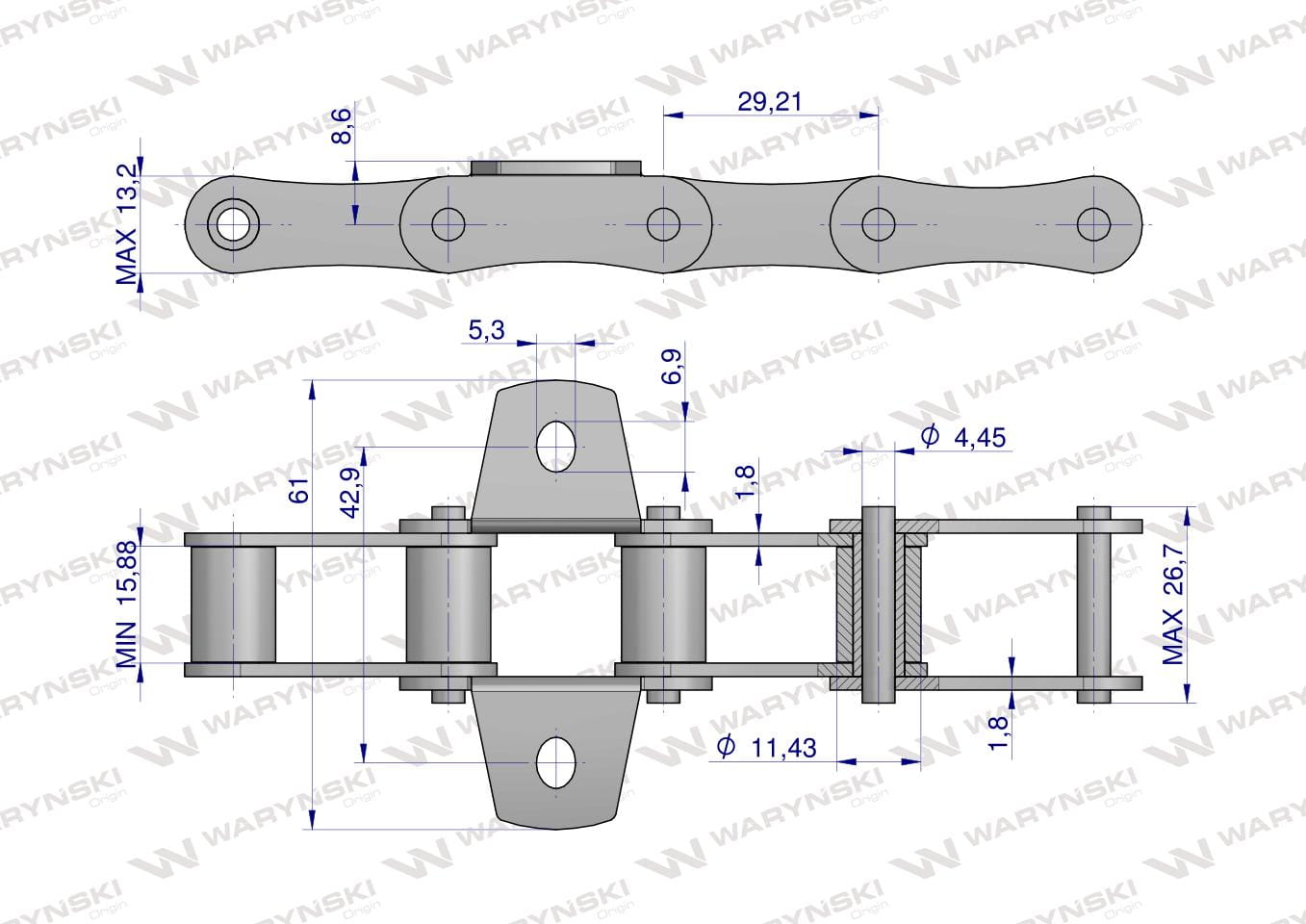 Maks. szerokość ogniwo łączące: 28,8 mm