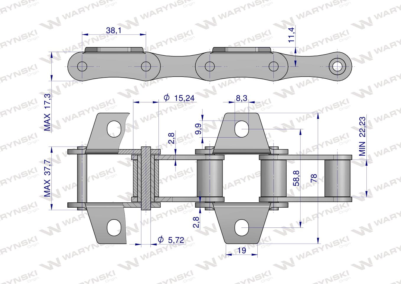 Wysokość zabieraka od osi łańcucha: 11,4 mm