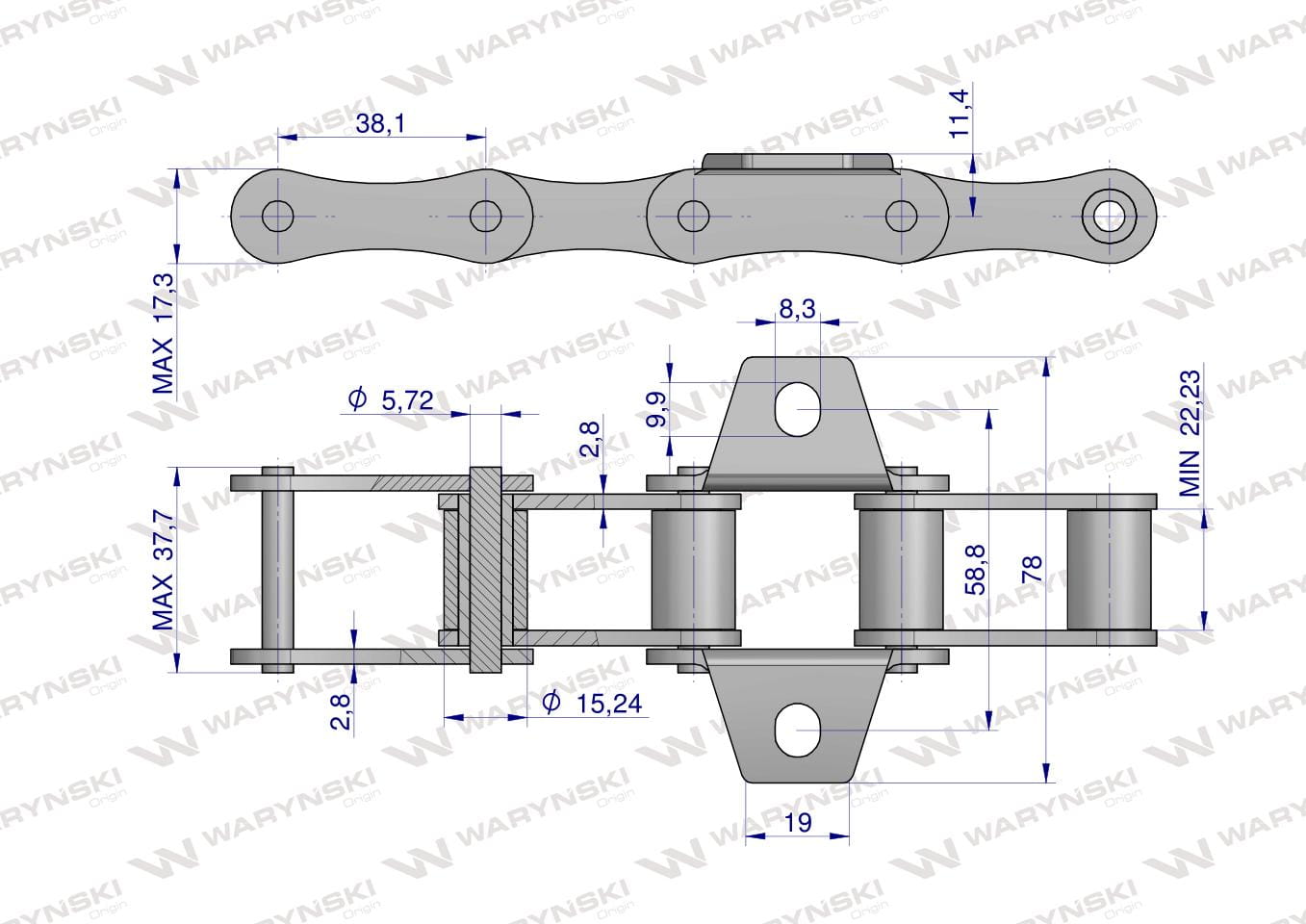 Wysokość zabieraka od osi łańcucha: 11,4 mm