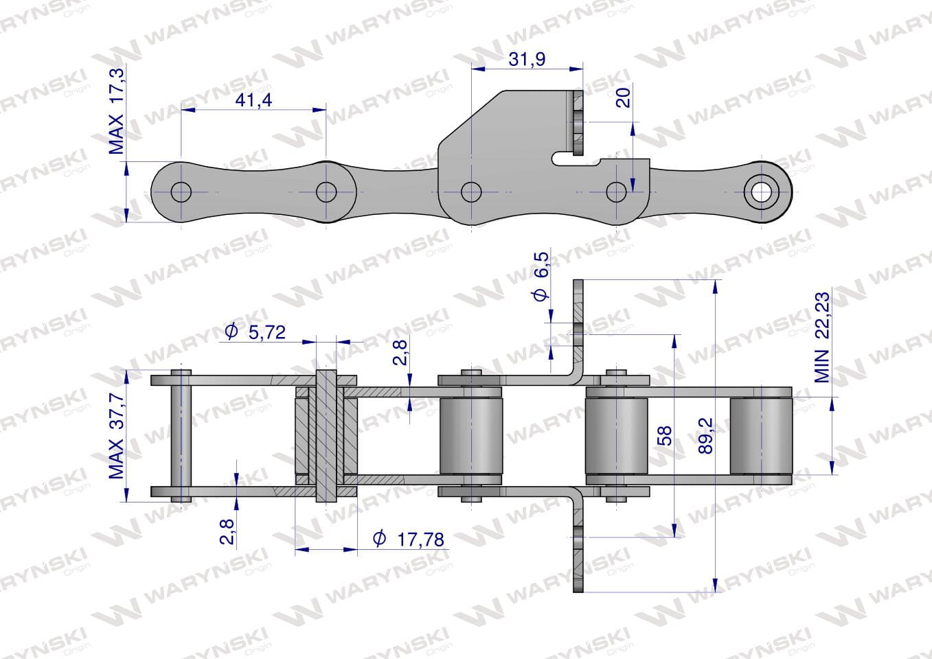 Łańcuch podajnika S55 łapka SD co 4 ogniwa 5m Waryński
