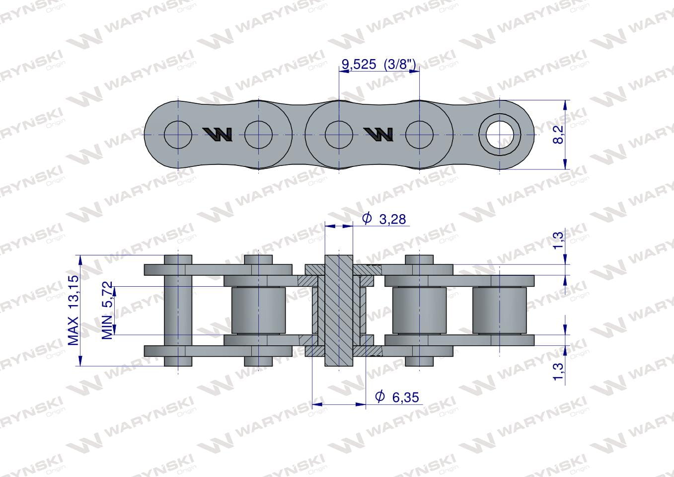 Podziałka: 3/8" / 9,525 mm