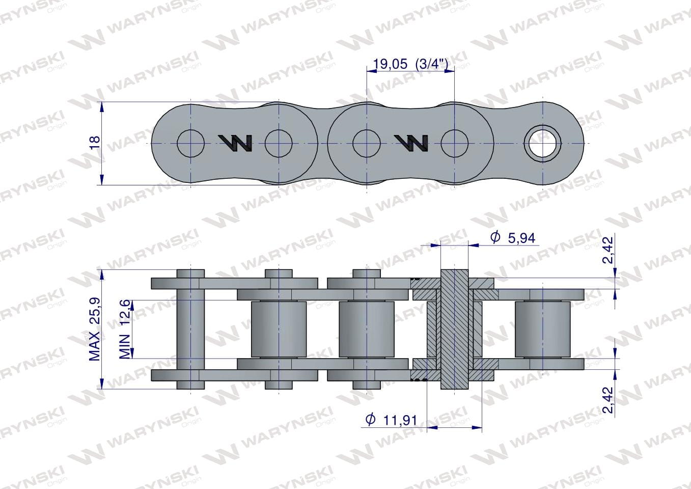 Łańcuch rolkowy 12A-1 ANSI A 60 (R1 3/4) Waryński
