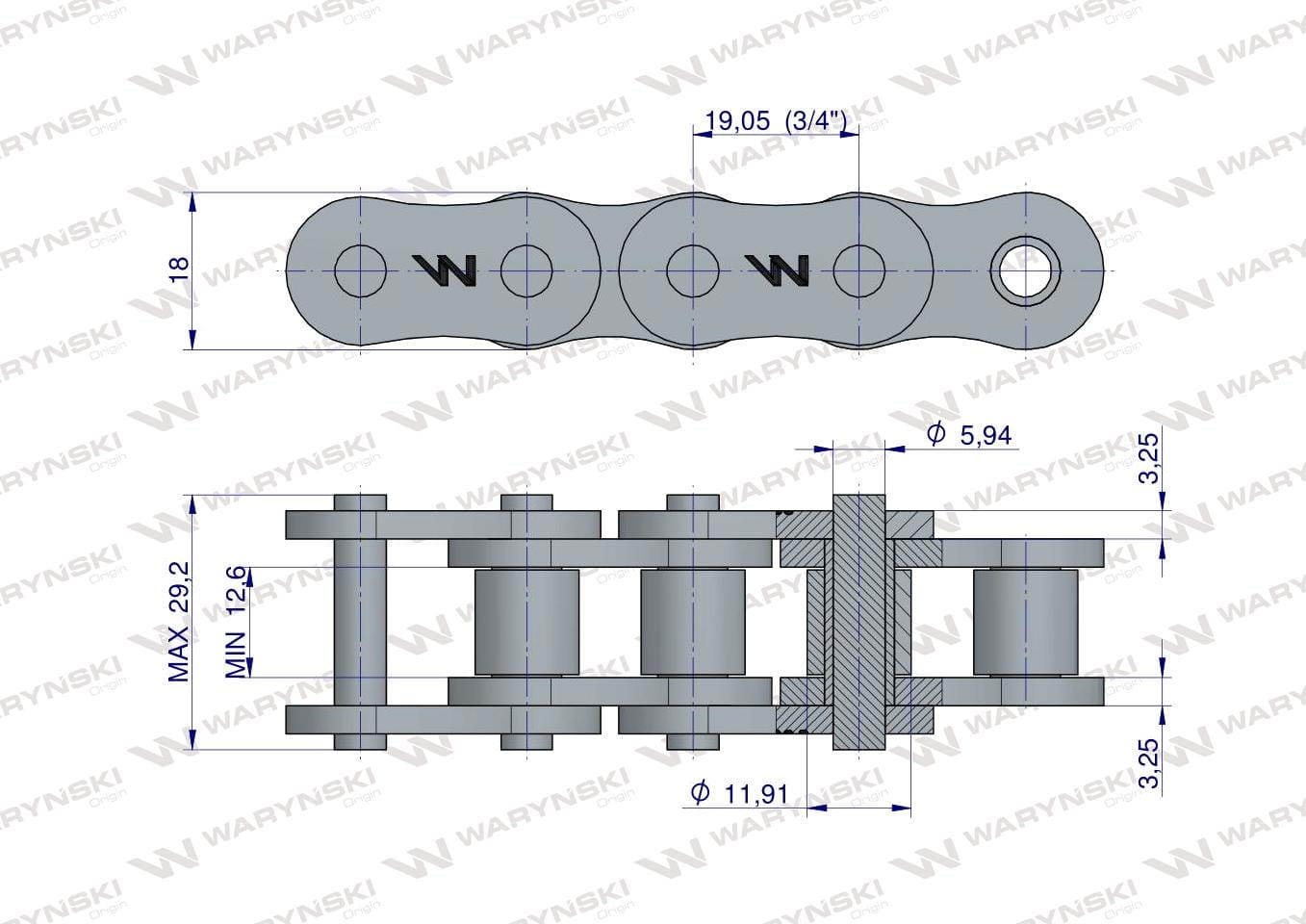 Łańcuch rolkowy 12AH-1 ANSI A 60H (R1 3/4) Waryński