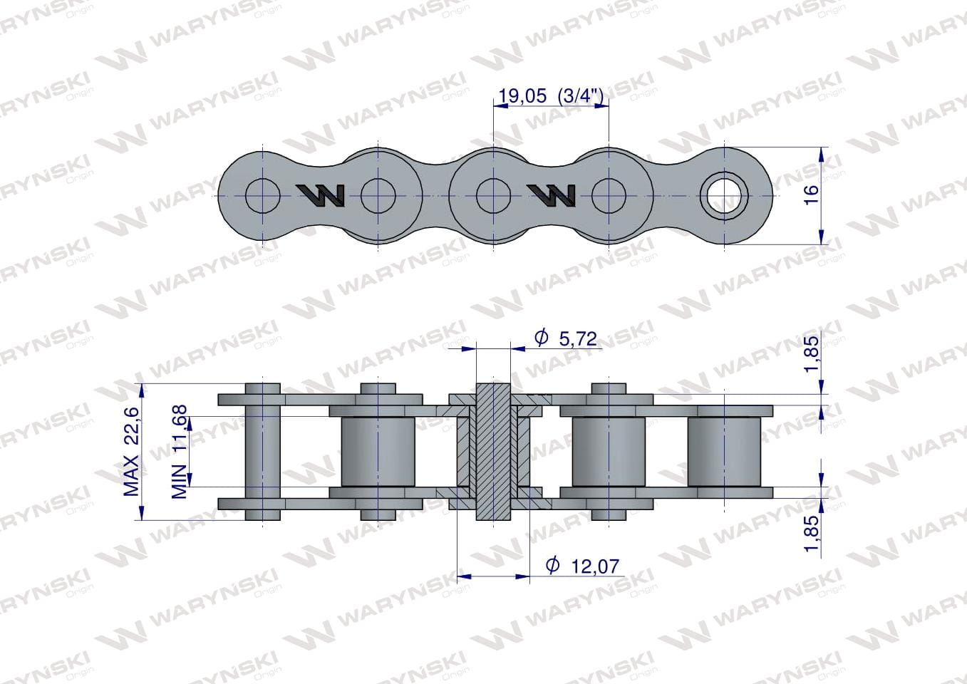 Łańcuch rolkowy 12B-1-144PZ (R1 3/4) adaptera A1H zastosowanie Rozrzutnik Waryński