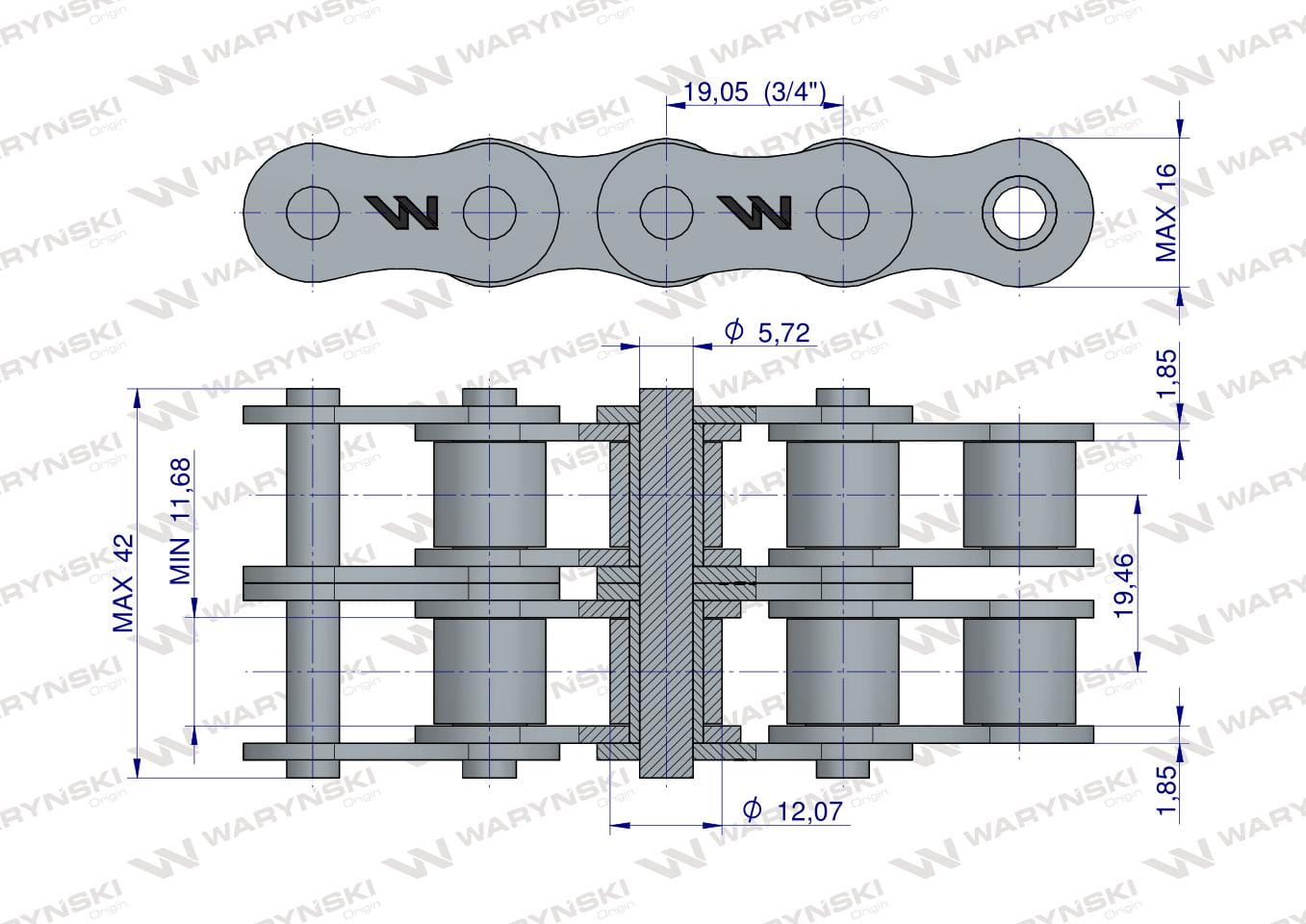 Łańcuch rolkowy 12B-2 (R2 3/4) 5 m Waryński