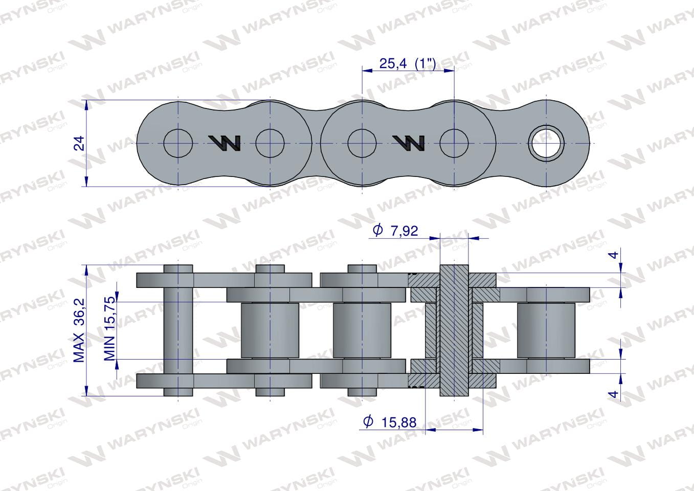Łańcuch rolkowy 16AH1-100PS ANSI A 80 H zastosowanie Prasa Rolująca Famarol Waryński