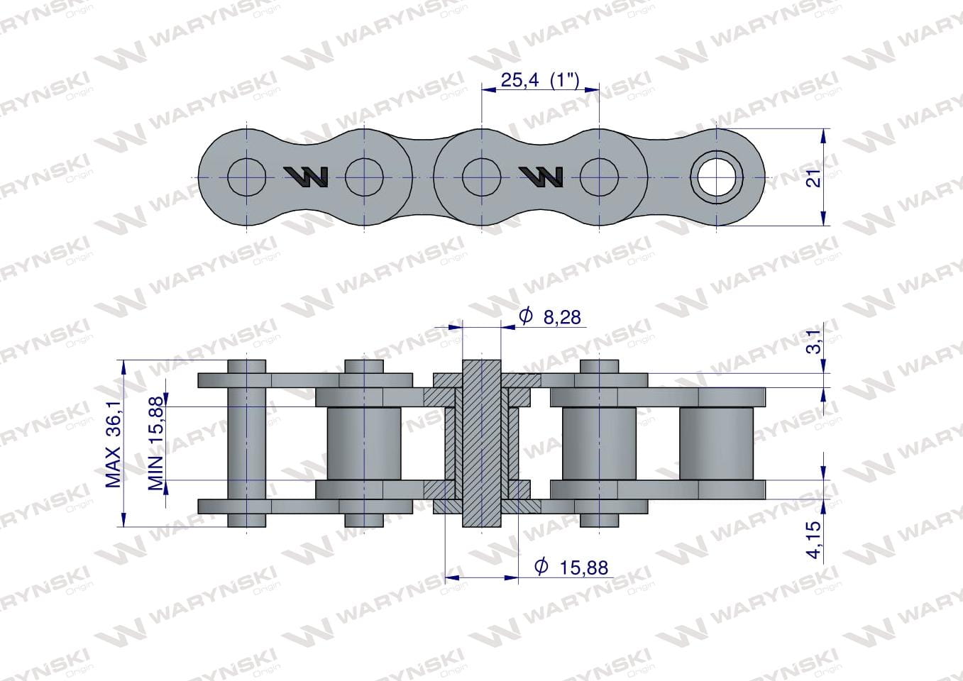 Łańcuch rolkowy 16B-1 (R1 1) 2.5 m Waryński