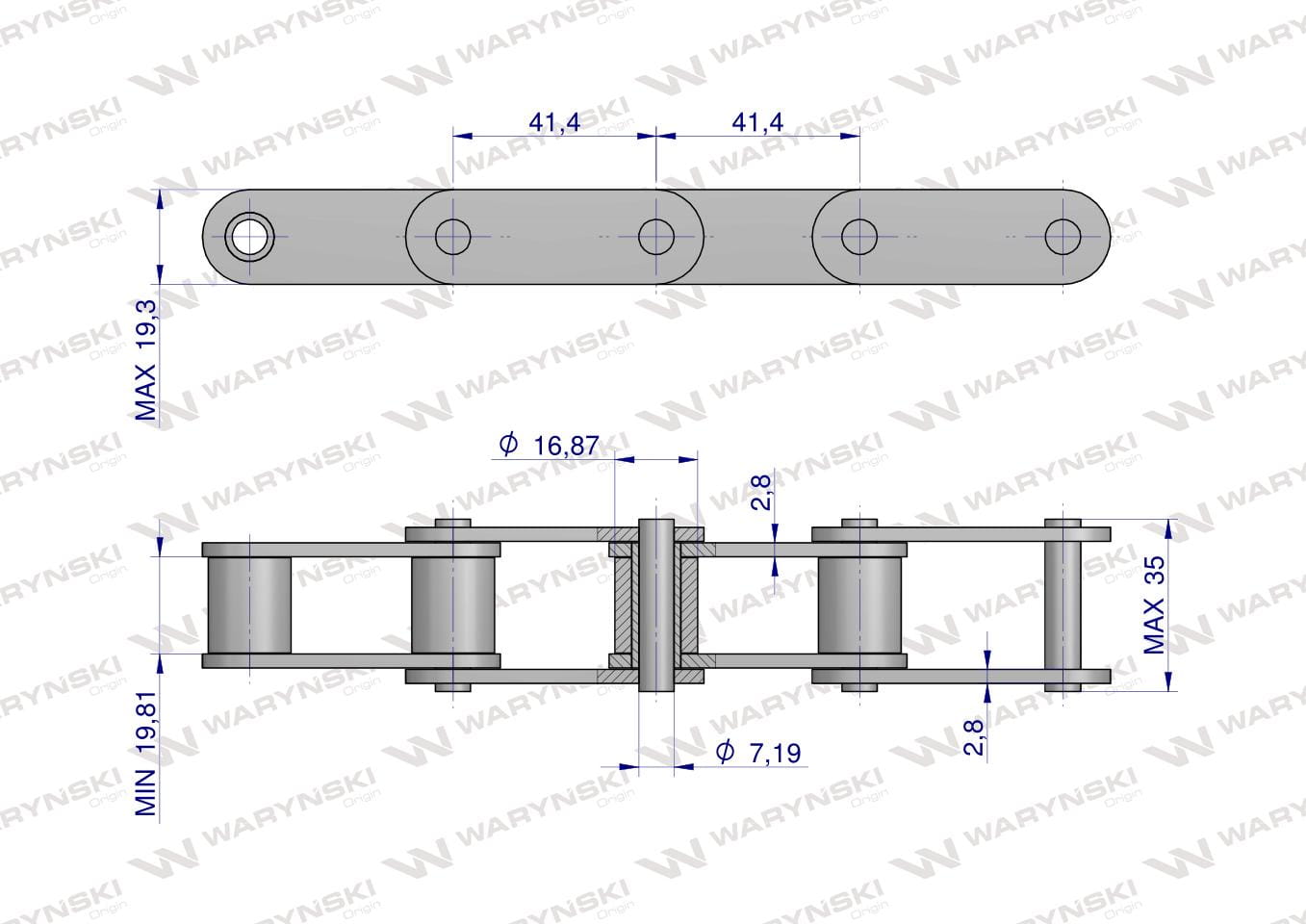 Maks. szerokość ogniwo łączące: 38,0 mm