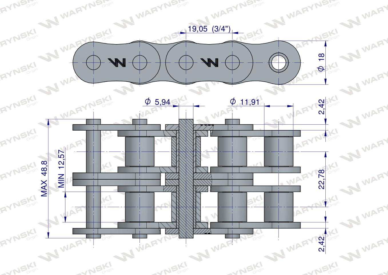 Łańcuch rolkowy L12A2-88PZ zastosowanie Claas 603132. 603132.0. 0006031321 Waryński