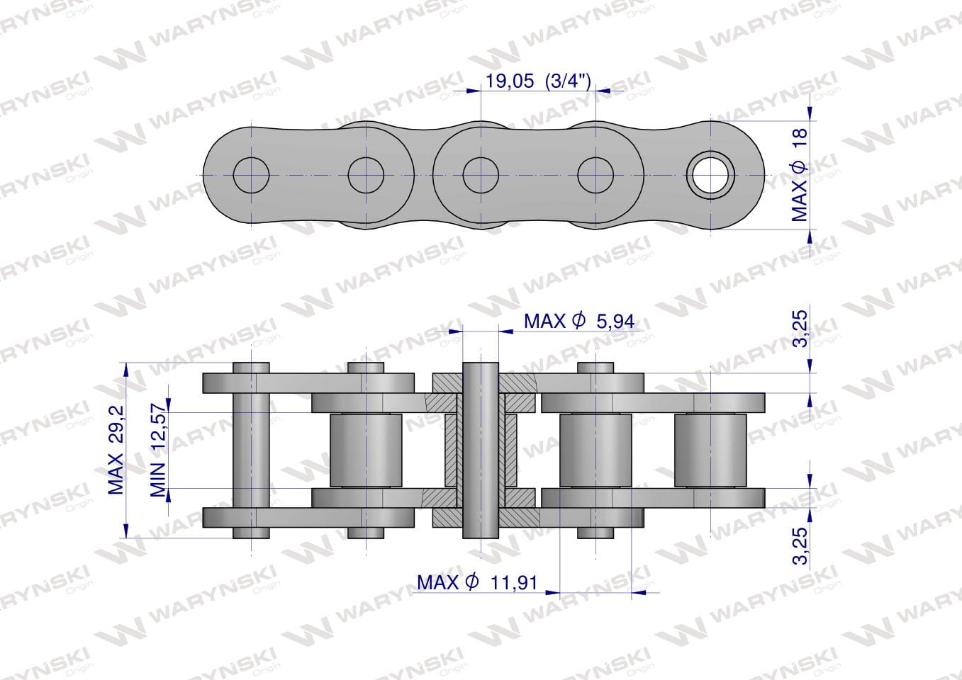 Łańcuch rolkowy napęd - ślimak wciągania 60HSP-87PS+Z+1+Z zastosowanie New Holland 84448828 Waryński