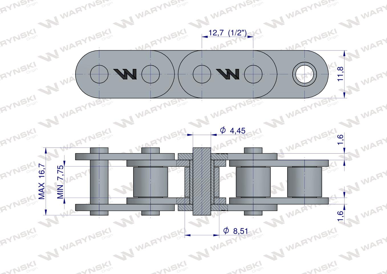 Łańcuch rolkowy prosta płytka 08B-1 (R1 1/2) 5 m Waryński