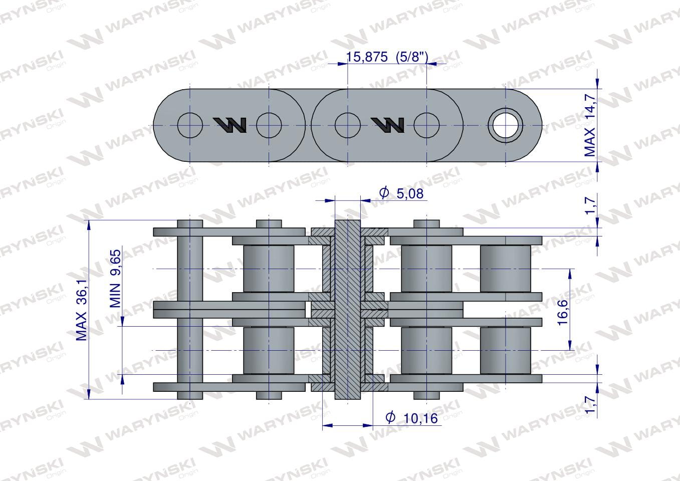Łańcuch rolkowy prosta płytka 10B-2 (R2 5/8) 5 m Waryński