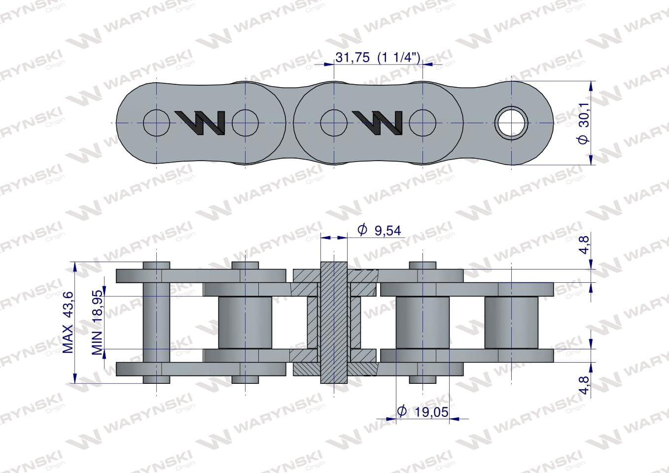 Łańcuch rolkowy wzmocniony 100SP (R1 1.1/4) 5m Waryński