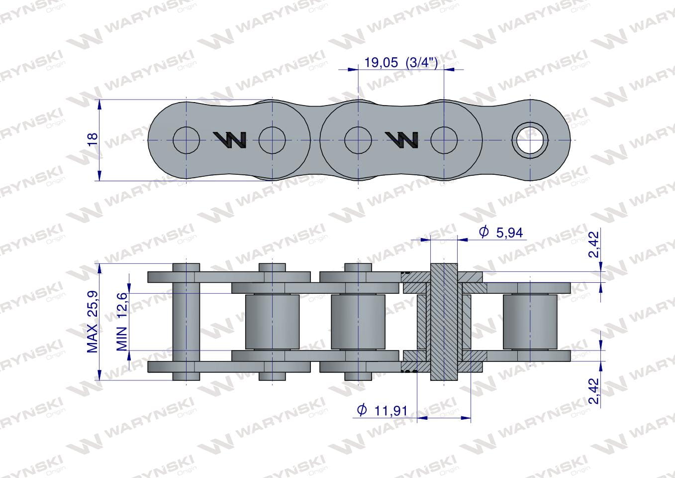 Podziałka : 3/4" / 19,050 mm