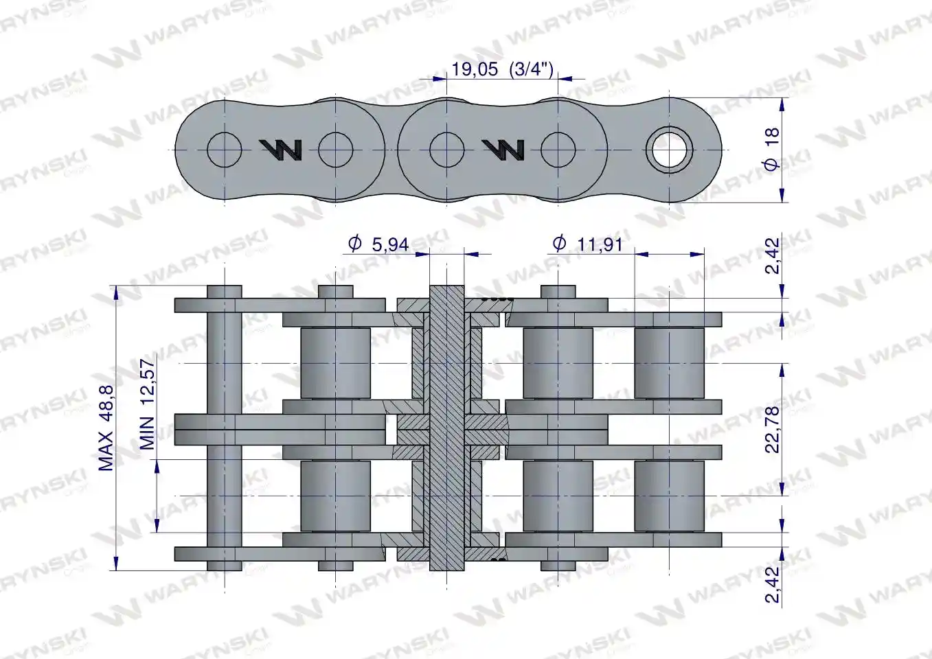 Łańcuch rolkowy wzmocniony 12A-2 ANSI A 60 (R2 3/4) 5 m Waryński