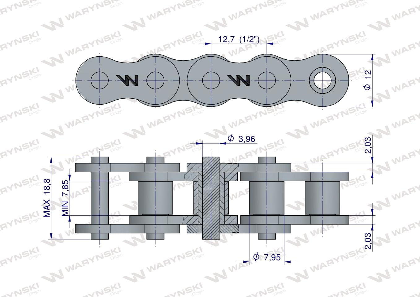 Łańcuch rolkowy wzmocniony przemysłowy 08AH-1 ANSI A 40H (R1 1/2) 5m Waryński