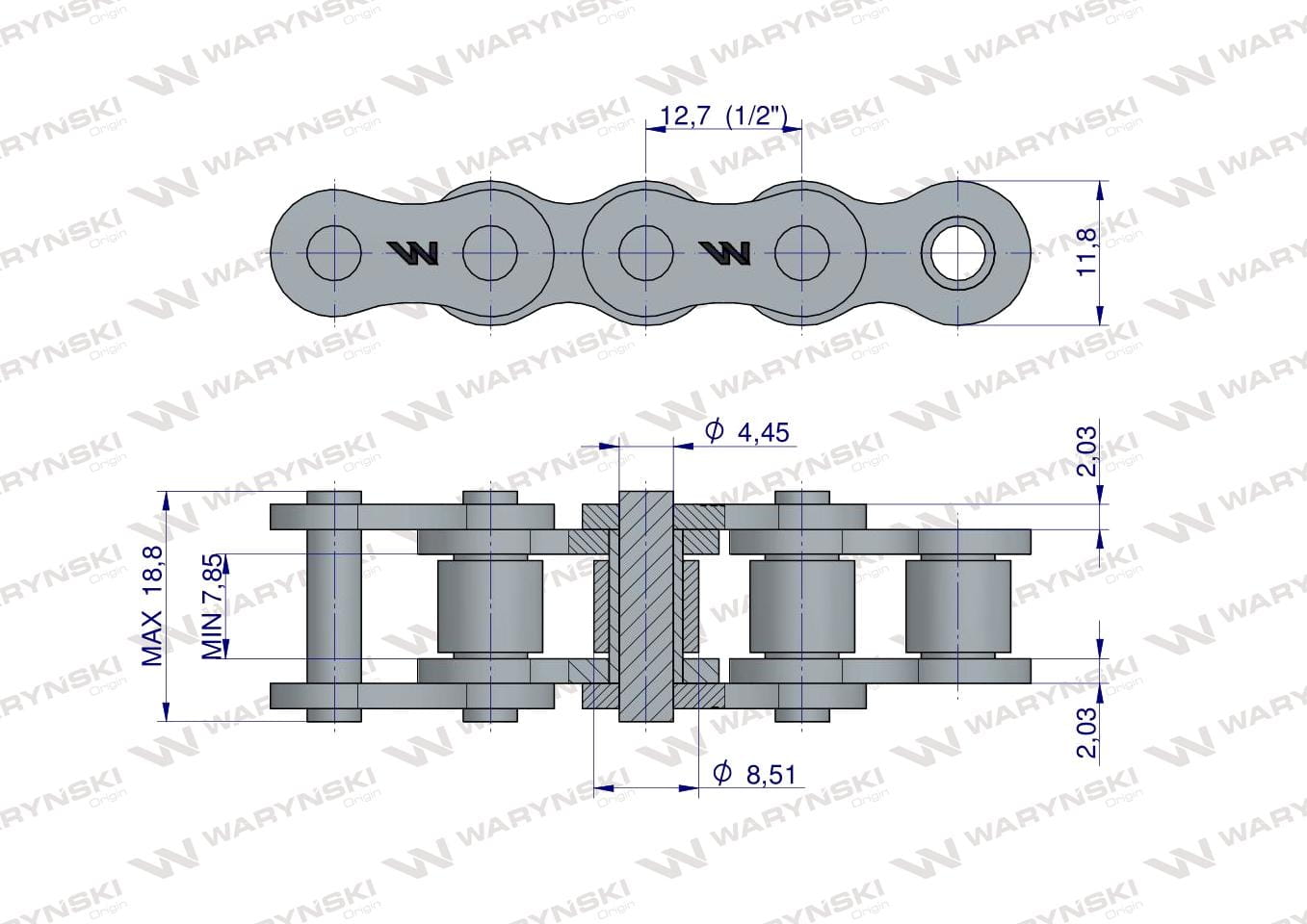 Maks. szerokość ogniwo łączące: 18,2 mm