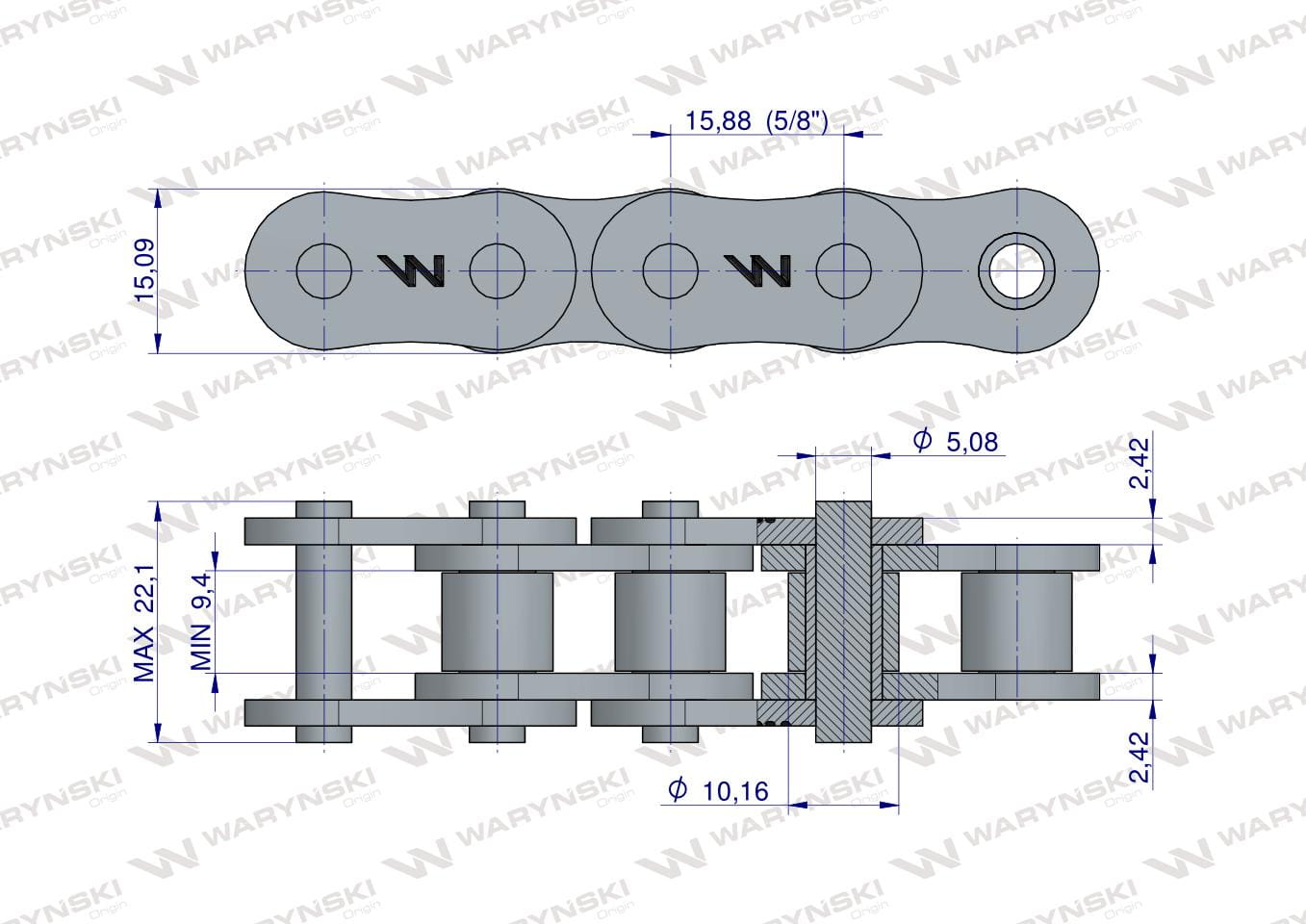 Łańcuch rolkowy wzmocniony przemysłowy 10AH-1 ANSI A 50H (R1 5/8) 2.5m Waryński