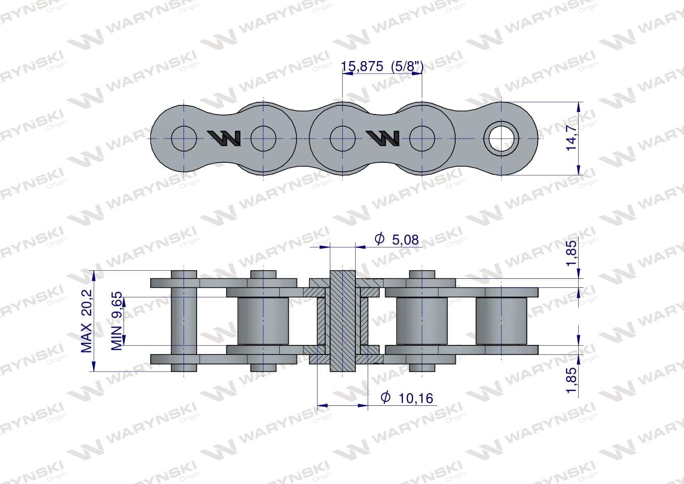 Łańcuch rolkowy wzmocniony przemysłowy 10BH-1 (R1 5/8) 5 m Waryński