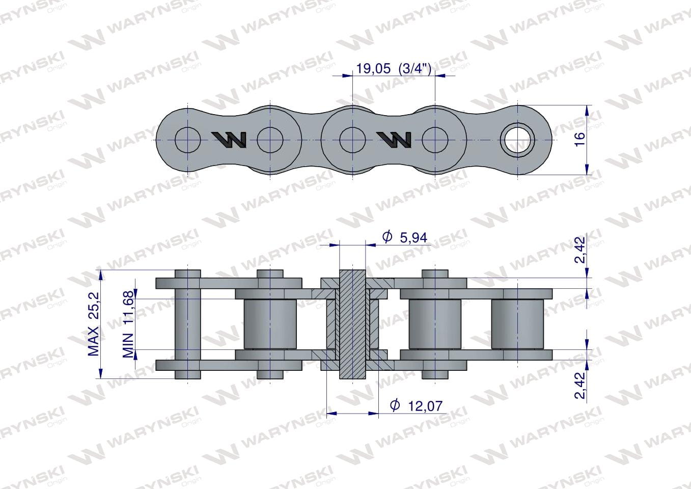 Podziałka: 3/4" / 19,050 mm