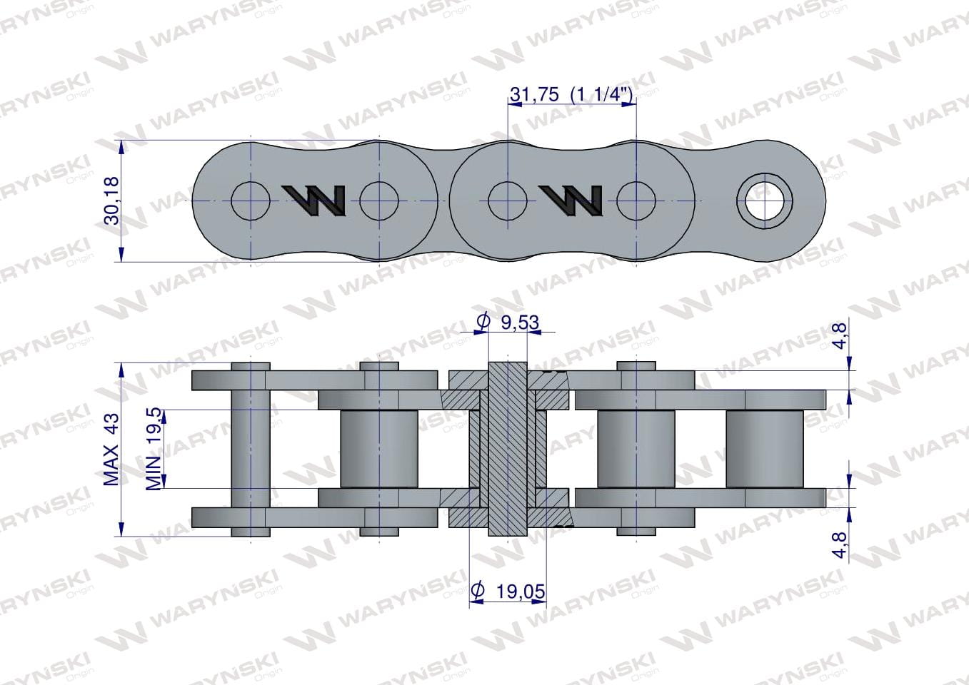 Łańcuch rolkowy wzmocniony przemysłowy 20AH-1 ANSI A 100H (R1 1.1/4) 5 m Waryński