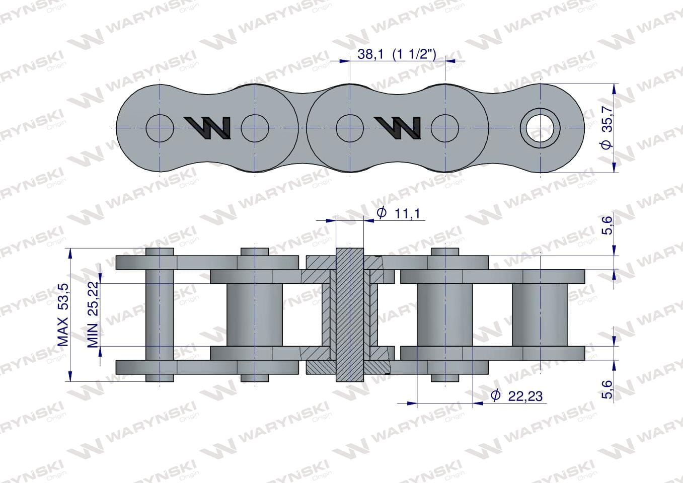 Łańcuch rolkowy wzmocniony przemysłowy 24AH-1 ANSI A 120H (R1 1.1/2) 2.5 m Waryński