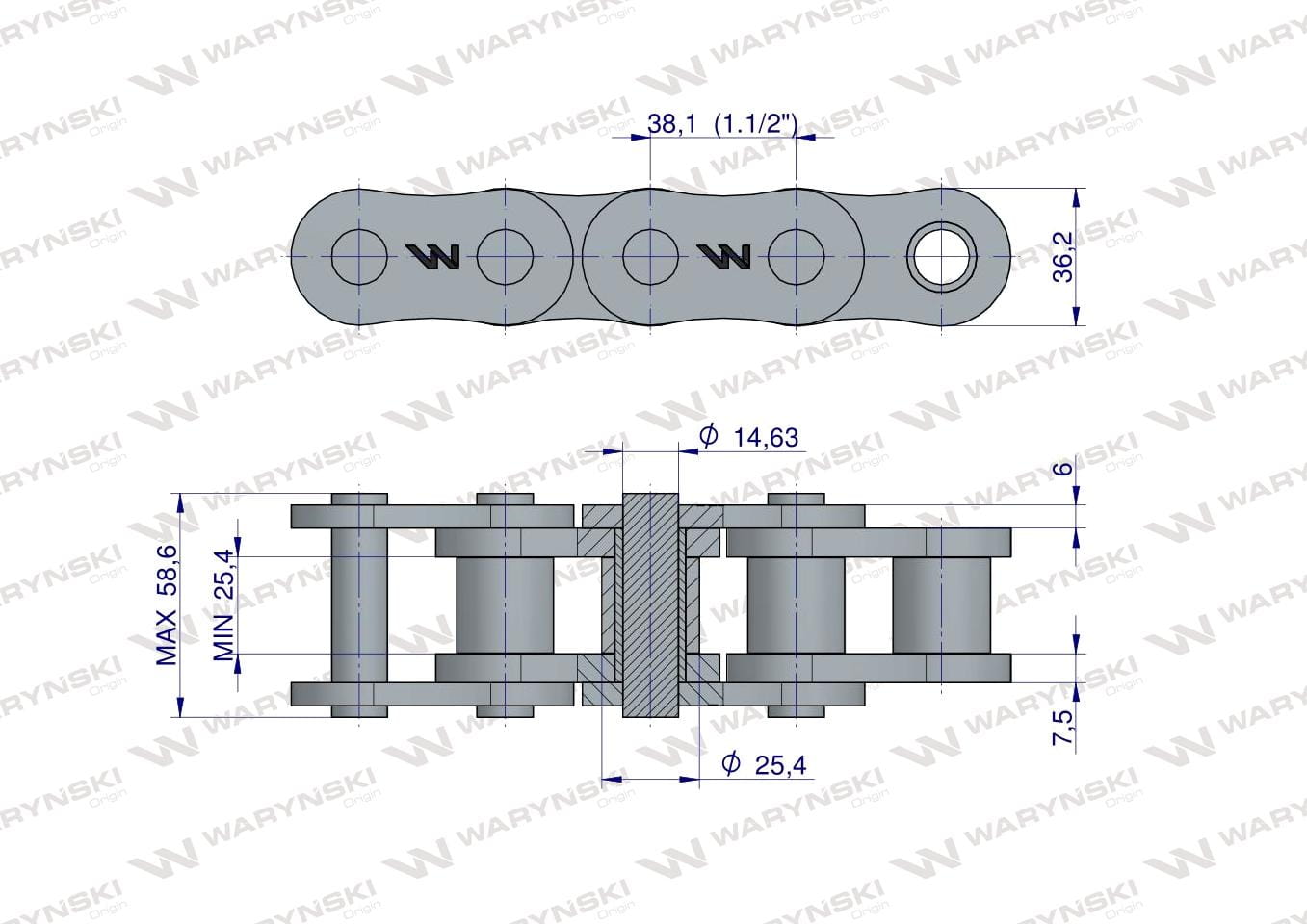 Łańcuch rolkowy wzmocniony przemysłowy 24BH-1 (R1 1.1/2) 2.5 m Waryński