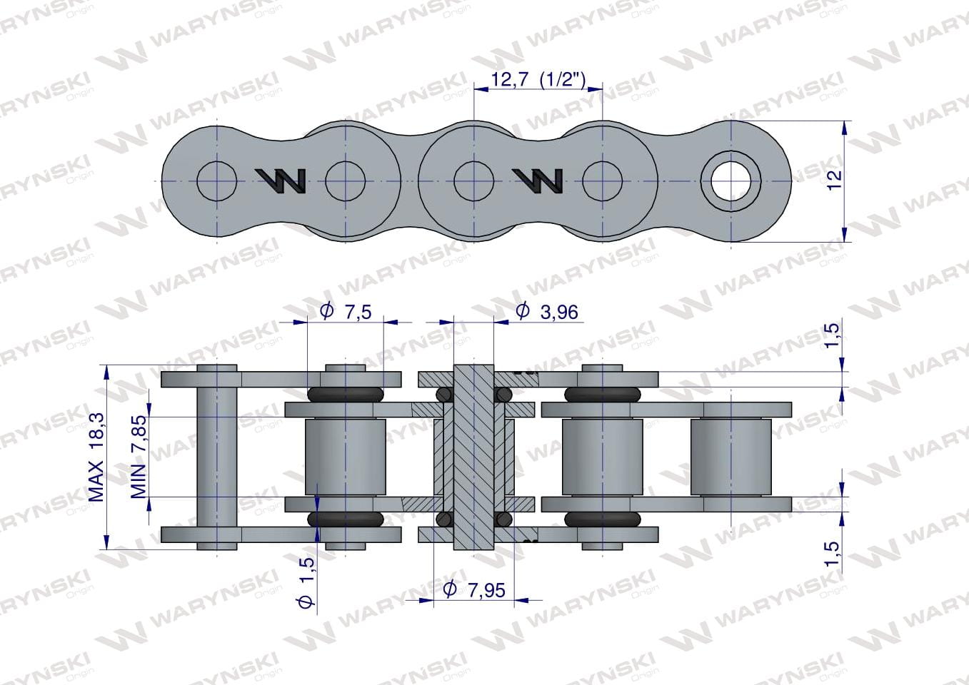 Łańcuch rolkowy z oringiem ANSI A 40 (R1 1/2) 5m Waryński
