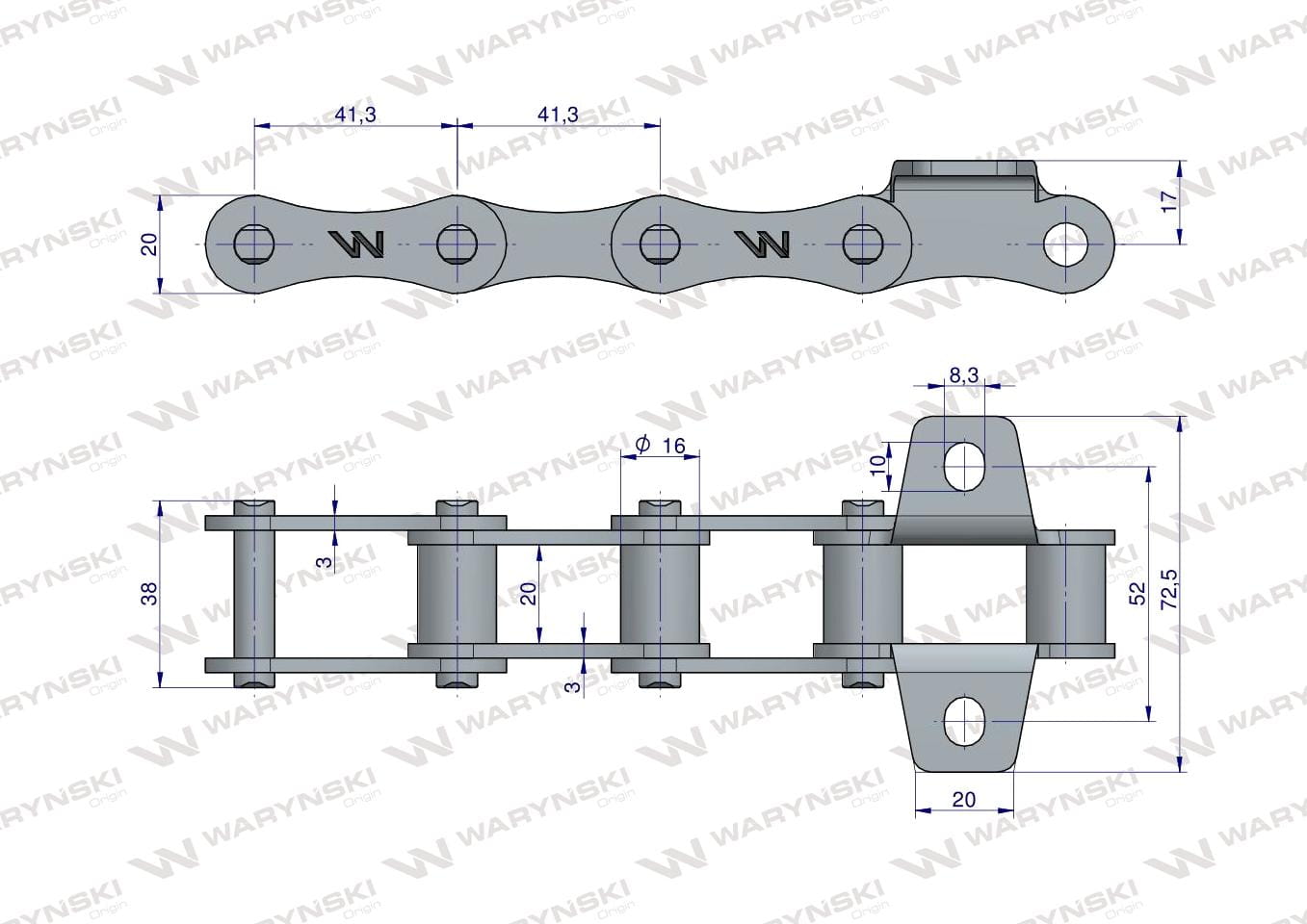 Łańcuch środkowy przenośnika pochyłego nkpl. zastosowanie Bizon Rekord Waryński