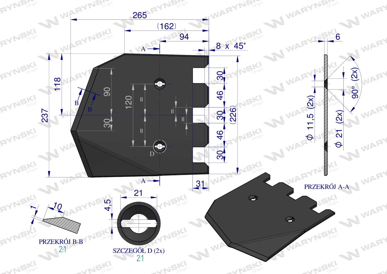 Lemiesz 237 mm listwowy prawy szerokość wyorywania 540 zastosowanie Grimme Waryński