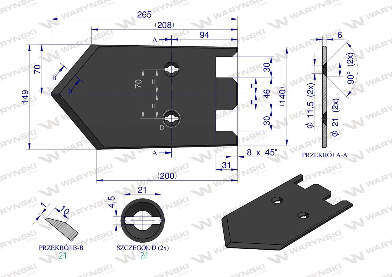 Lemiesz do Grimme 149 mm listwowy lewy szerokość wyorywania 540 Waryński