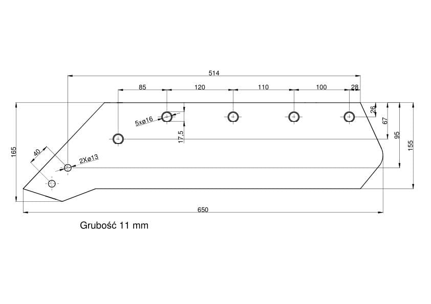 Lemiesz lewy 18" Kverneland Vulcan 073007