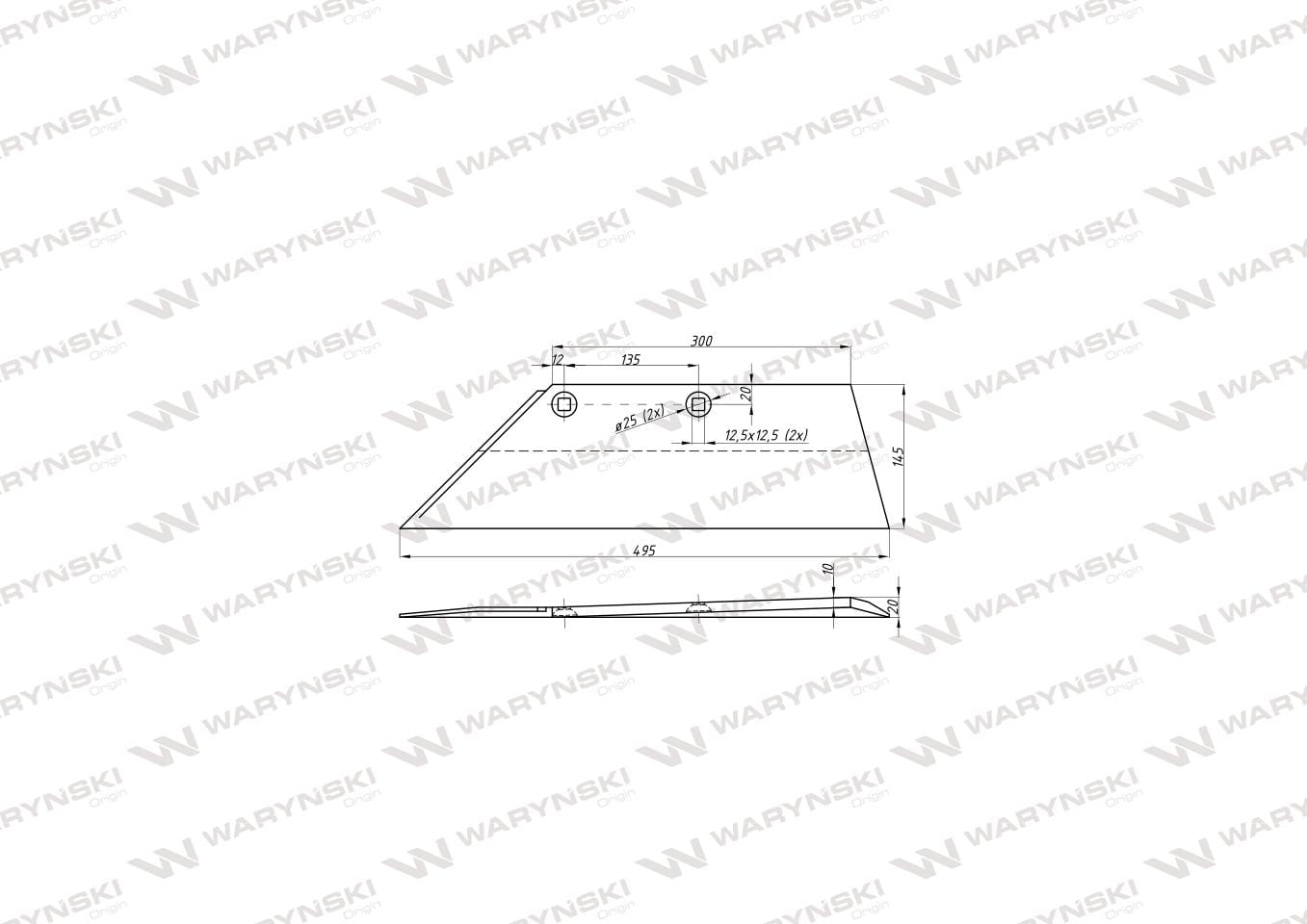 Części robocze marki WARYŃSKI wykonane są z niezwykle wytrzymałej i odpornej na ścieranie stali borowej pochodzącej z europejskich hut. Każda, nawet najmniejsza dostawa, posiada dołączony certyfikat potwierdzający skład materiałowy. Stal borowa posiada właściwości szczególnie przydatne w zastosowaniach konstrukcyjnych wymagających dużej wytrzymałości. Połączenie wysokogatunkowej stali borowej, monitorowanego procesu obróbki cieplnej oraz skrupulatna kontrola jakości produktów WARYŃSKI to gwarancja wydłużonego okresu eksploatacji. Produkty WARYŃSKI to oszczędność kosztów związanych z powolnym ścieraniem i zużyciem części roboczych. W trosce o trwałość naszych produktów oraz zadowolenie klientów proces produkcji lemieszy WARYŃSKI nie zakłada operacji spawania. Wszystkie rodzaje otworów są wykonane w specjalny sposób minimalizujący naprężenia oraz zmniejszający ryzyko pęknięć.