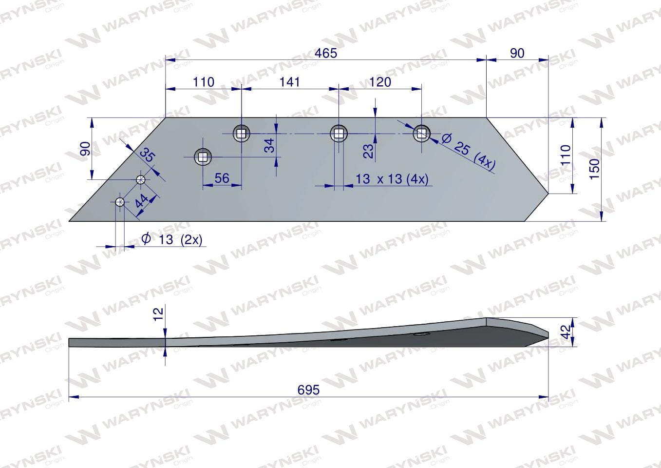 Części robocze marki WARYŃSKI wykonane są z niezwykle wytrzymałej i odpornej na ścieranie stali borowej pochodzącej z europejskich hut. Każda, nawet najmniejsza dostawa, posiada dołączony certyfikat potwierdzający skład materiałowy. Stal borowa posiada właściwości szczególnie przydatne w zastosowaniach konstrukcyjnych wymagających dużej wytrzymałości. Połączenie wysokogatunkowej stali borowej, monitorowanego procesu obróbki cieplnej oraz skrupulatna kontrola jakości produktów WARYŃSKI to gwarancja wydłużonego okresu eksploatacji. Produkty WARYŃSKI to oszczędność kosztów związanych z powolnym ścieraniem i zużyciem części roboczych. W trosce o trwałość naszych produktów oraz zadowolenie klientów proces produkcji lemieszy WARYŃSKI nie zakłada operacji spawania. Wszystkie rodzaje otworów są wykonane w specjalny sposób minimalizujący naprężenia oraz zmniejszający ryzyko pęknięć.