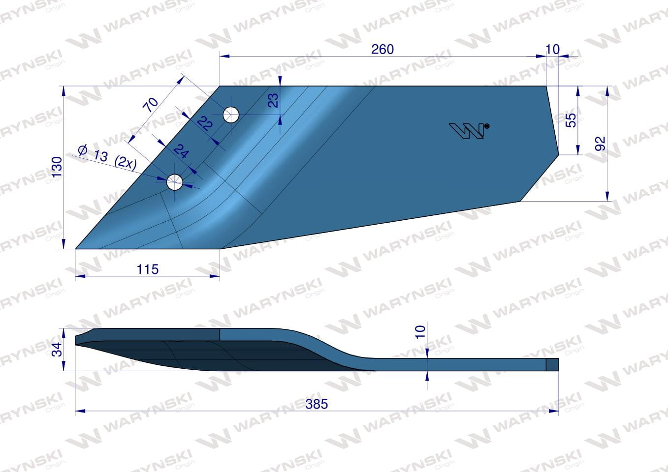 W-3374416 Lemiesz prosty prawy zamiennik Lemken Smaragd Waryński
