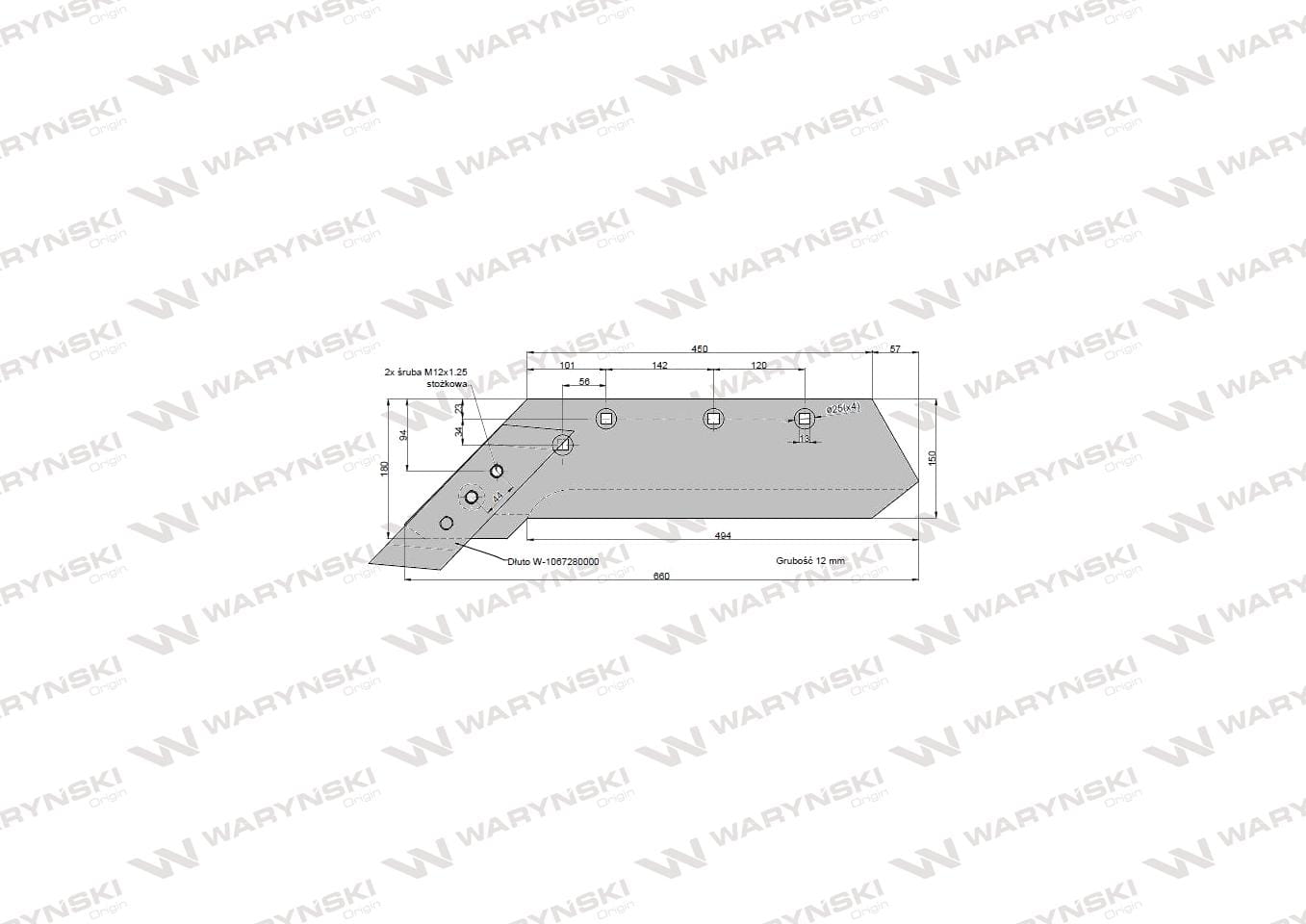 Części robocze marki WARYŃSKI wykonane są z niezwykle wytrzymałej i odpornej na ścieranie stali borowej pochodzącej z europejskich hut. Każda, nawet najmniejsza dostawa, posiada dołączony certyfikat potwierdzający skład materiałowy. Stal borowa posiada właściwości szczególnie przydatne w zastosowaniach konstrukcyjnych wymagających dużej wytrzymałości. Połączenie wysokogatunkowej stali borowej, monitorowanego procesu obróbki cieplnej oraz skrupulatna kontrola jakości produktów WARYŃSKI to gwarancja wydłużonego okresu eksploatacji. Produkty WARYŃSKI to oszczędność kosztów związanych z powolnym ścieraniem i zużyciem części roboczych. W trosce o trwałość naszych produktów oraz zadowolenie klientów proces produkcji lemieszy WARYŃSKI nie zakłada operacji spawania. Wszystkie rodzaje otworów są wykonane w specjalny sposób minimalizujący naprężenia oraz zmniejszający ryzyko pęknięć.