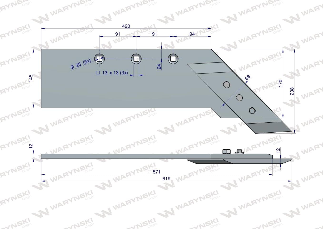 Części robocze marki WARYŃSKI wykonane są z niezwykle wytrzymałej i odpornej na ścieranie stali borowej pochodzącej z europejskich hut. Każda, nawet najmniejsza dostawa, posiada dołączony certyfikat potwierdzający skład materiałowy. Stal borowa posiada właściwości szczególnie przydatne w zastosowaniach konstrukcyjnych wymagających dużej wytrzymałości. Połączenie wysokogatunkowej stali borowej, monitorowanego procesu obróbki cieplnej oraz skrupulatna kontrola jakości produktów WARYŃSKI to gwarancja wydłużonego okresu eksploatacji. Produkty WARYŃSKI to oszczędność kosztów związanych z powolnym ścieraniem i zużyciem części roboczych. W trosce o trwałość naszych produktów oraz zadowolenie klientów proces produkcji lemieszy WARYŃSKI nie zakłada operacji spawania. Wszystkie rodzaje otworów są wykonane w specjalny sposób minimalizujący naprężenia oraz zmniejszający ryzyko pęknięć.