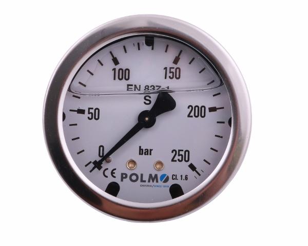 Manometr glicerynowy M63 0-250 bar tylne przyłącze G1/4" POLMO