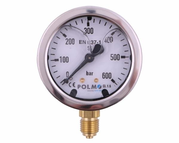 Manometr glicerynowy M63 0-600 bar dolne przyłącze G1/4" POLMO