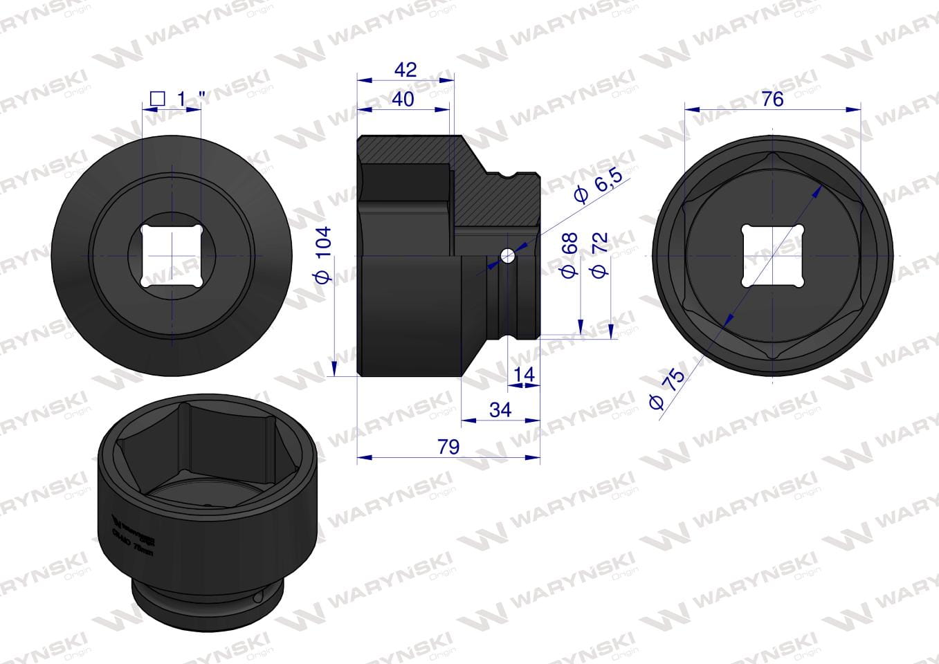 Nasadka udarowa 1" sześciokątna 75mm Waryński