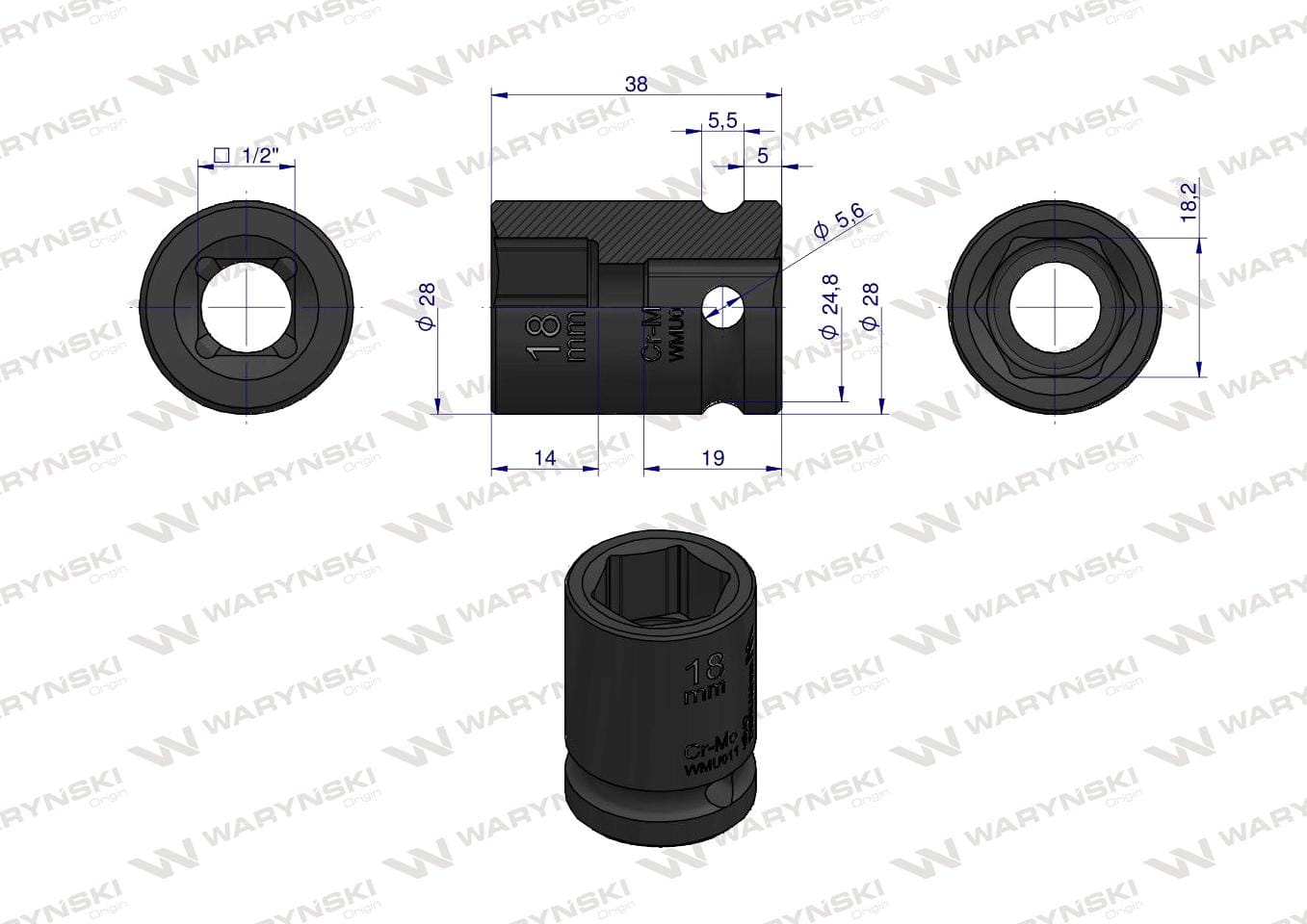 Nasadka udarowa sześciokątna 1/2" 18 mm CrMo DIN 3129 Waryński