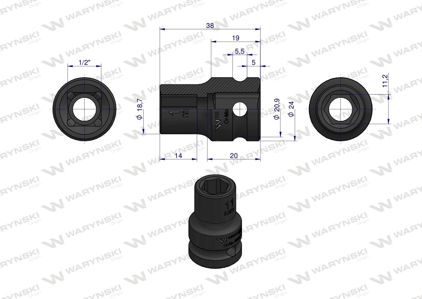 Nasadka udarowa sześciokątna 1/2". 11 mm. CrMo. DIN 3129. Waryński