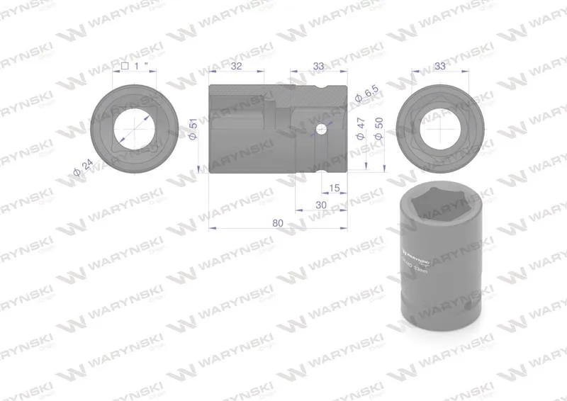 Nasadka udarowa sześciokątna 1"długa 32 mm CrMo DIN 3129 Waryński
