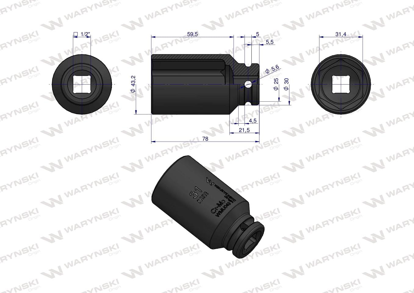 Nasadka udarowa sześciokątna długa 1/2" 31 mm CrMo DIN 3129 Waryński