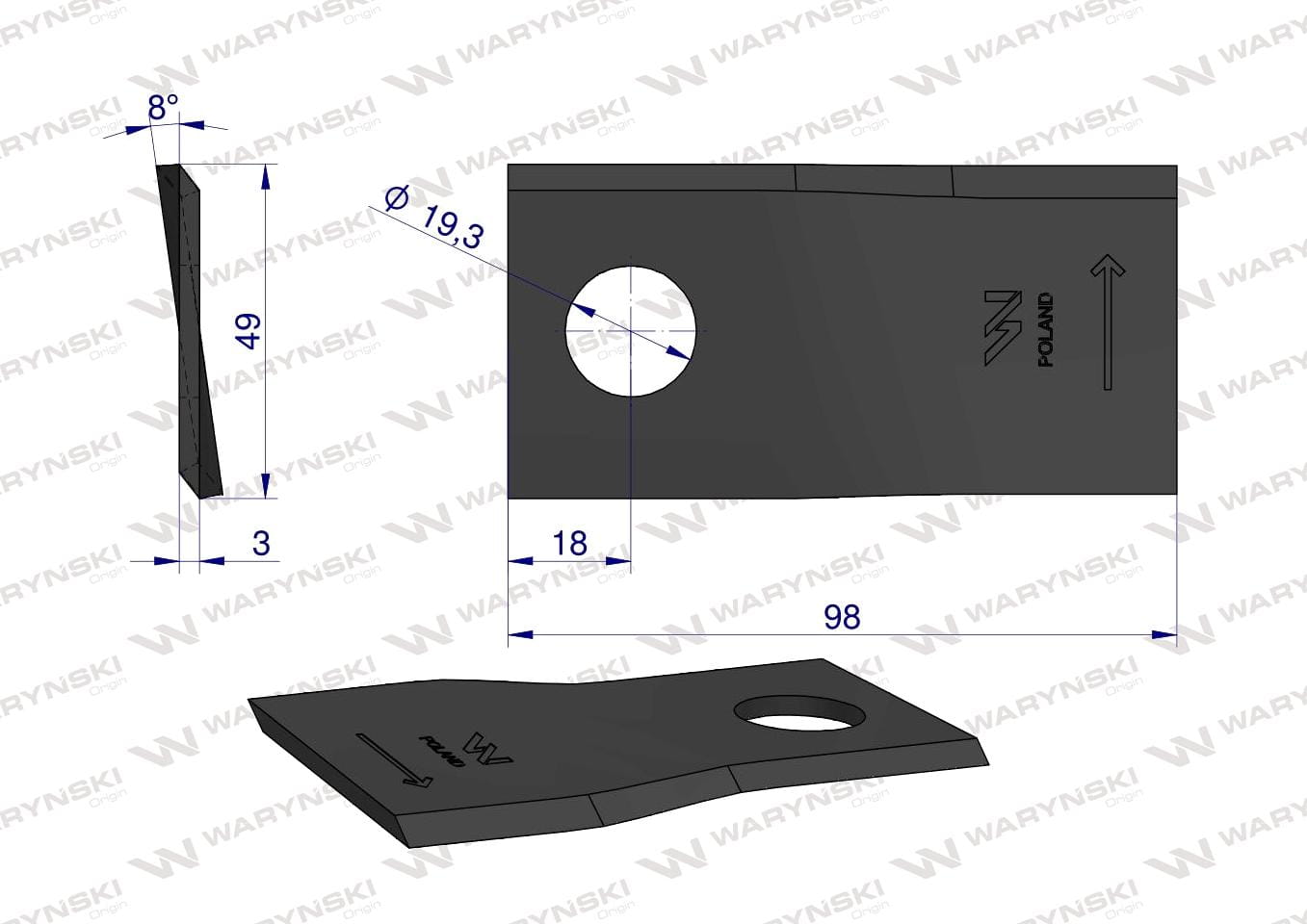 Nóż, nożyk kosiarka 98X49X3X19,5 zastosowanie Samasz BRZW (opak 12xL+12xP) WARYŃSKI ( sprzedawane po 24 )