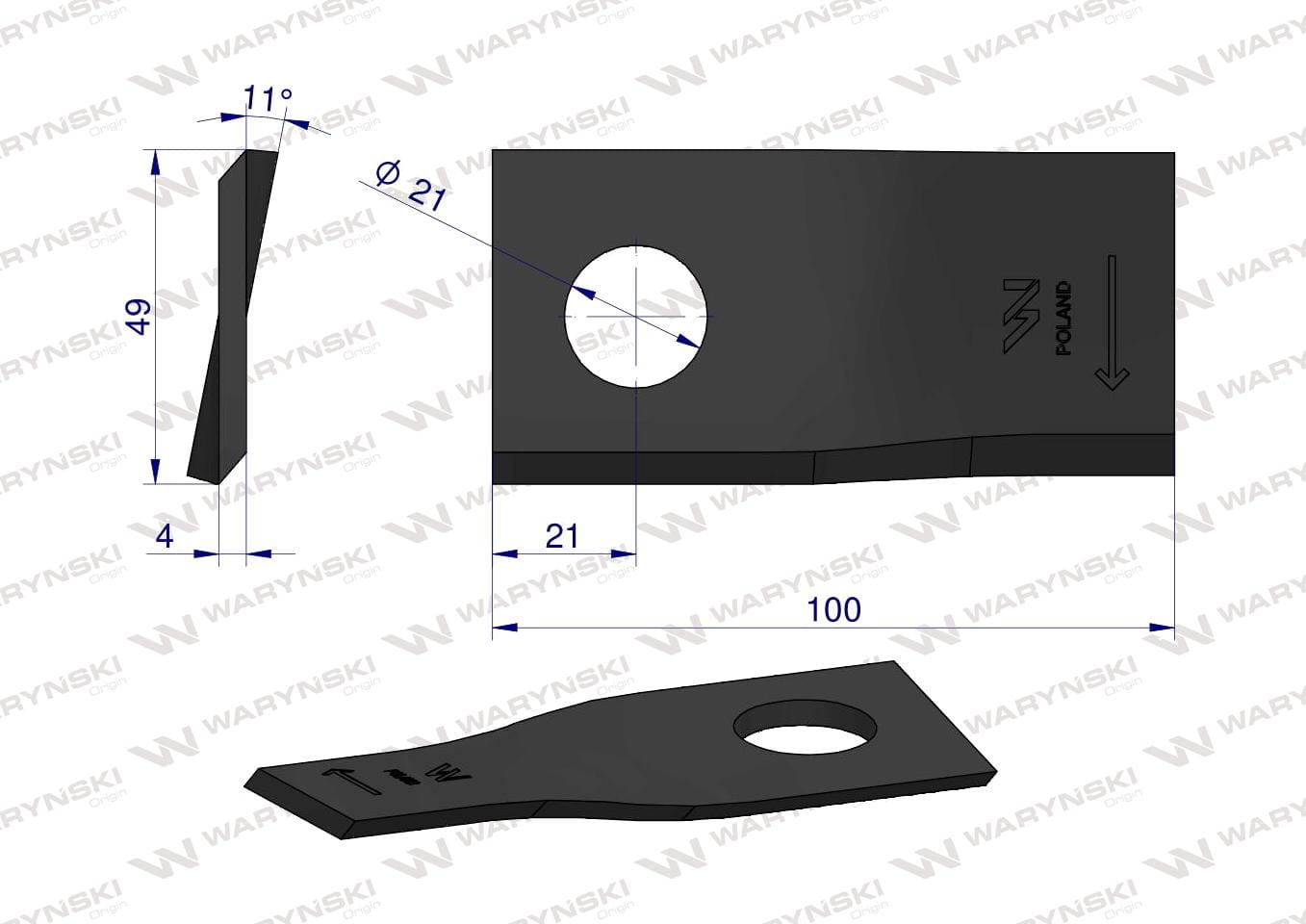 Nóż nożyk kosiarka 100X48X4X21 prawy zastosowanie 434978 Pottinger WARYŃSKI