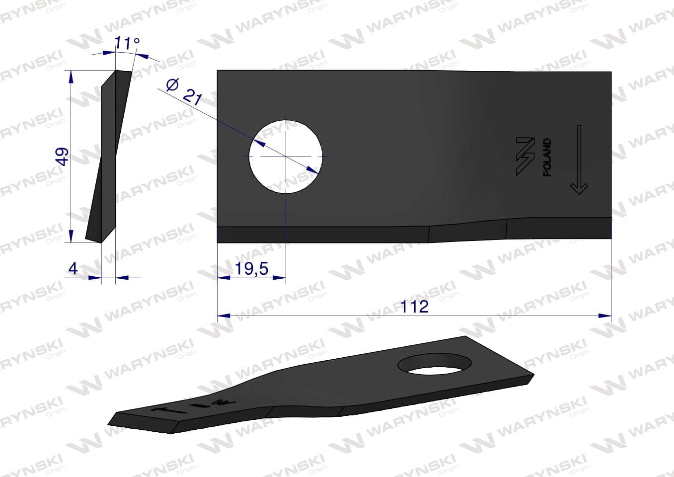 Nóż nożyk kosiarka 112X48X4X22 prawy zastosowanie 434970 Pottinger WARYŃSKI