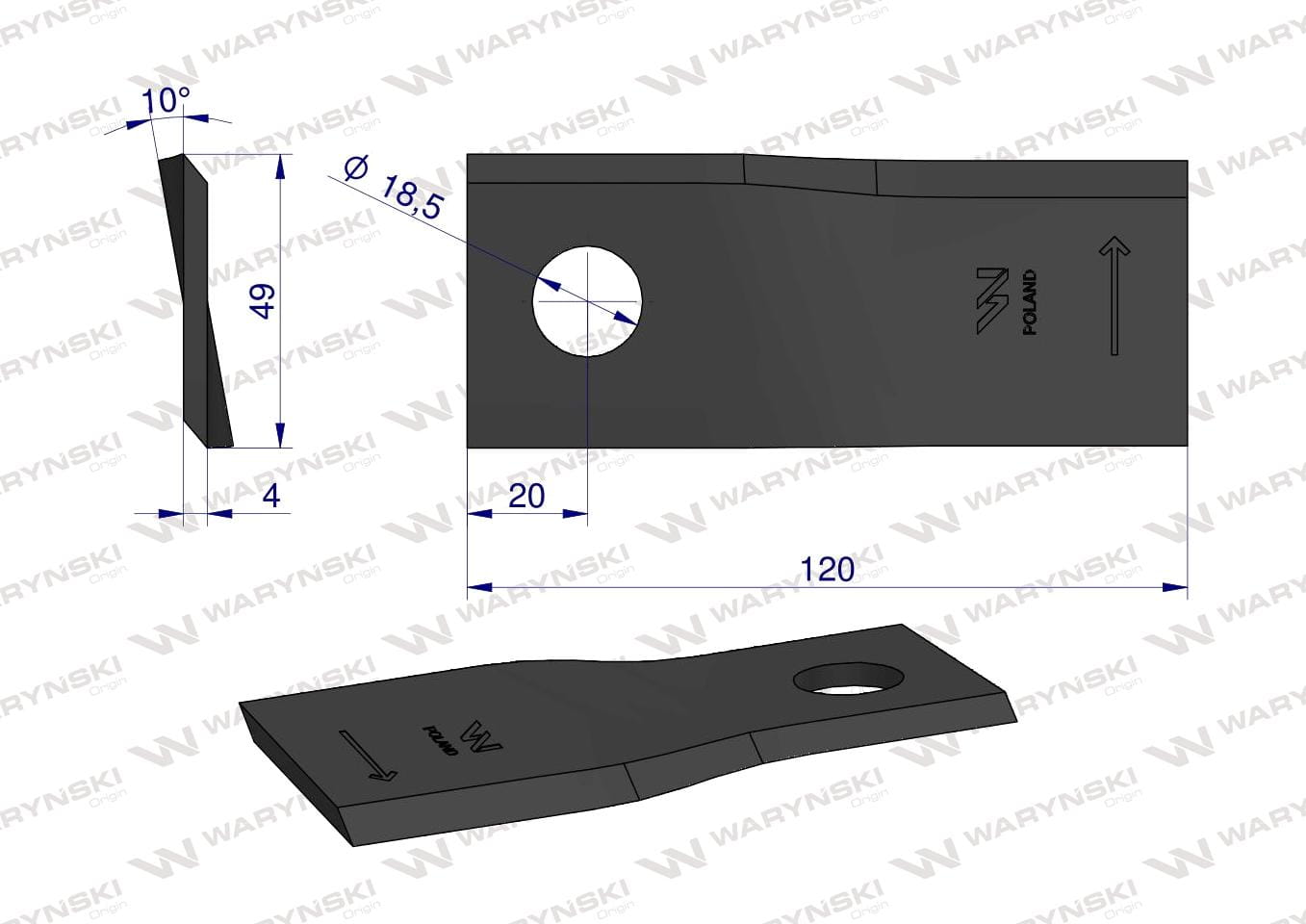 Nóż nożyk kosiarka 120X48X4X18,5 lewy zastosowanie 111724 Fella WARYŃSKI